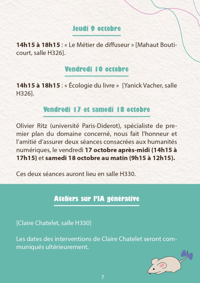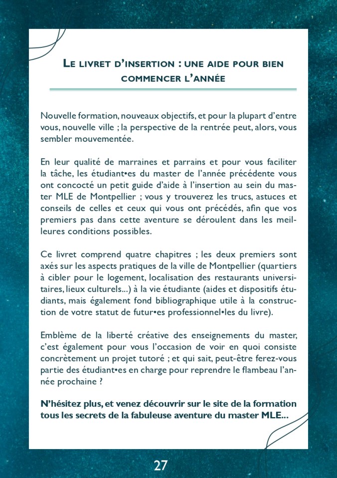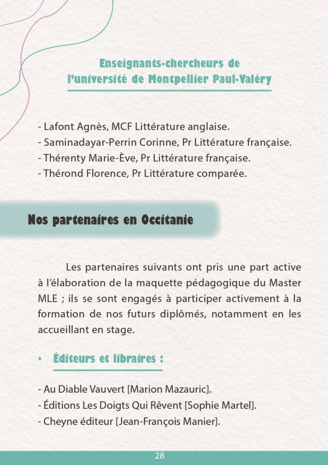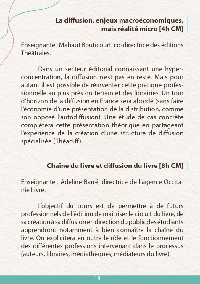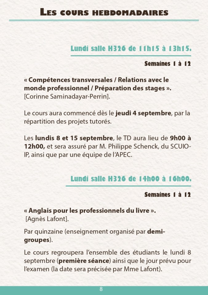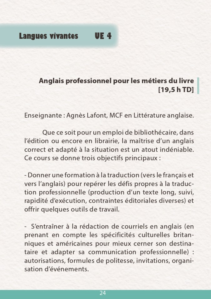 Le Master professionnel Métiers du Livre et de l’Édition forme des professionnel.le.s dans les domaines de l’édition, de la médiation culturelle, de la librairie et des médiathèques. La première année, nos étudiant.e.s s’initient aux compétences infographiques ainsi qu’aux règles orthotypographiques indispensables à leurs travaux, apprennent à gérer et à réaliser des projets culturels et consolident leurs connaissances dans le domaine de l’histoire littéraire. Cette première année permet également la réalisation de projets tutorés et de stages, laquelle représente une première expérience de terrain aussi enrichissante que professionnalisante.